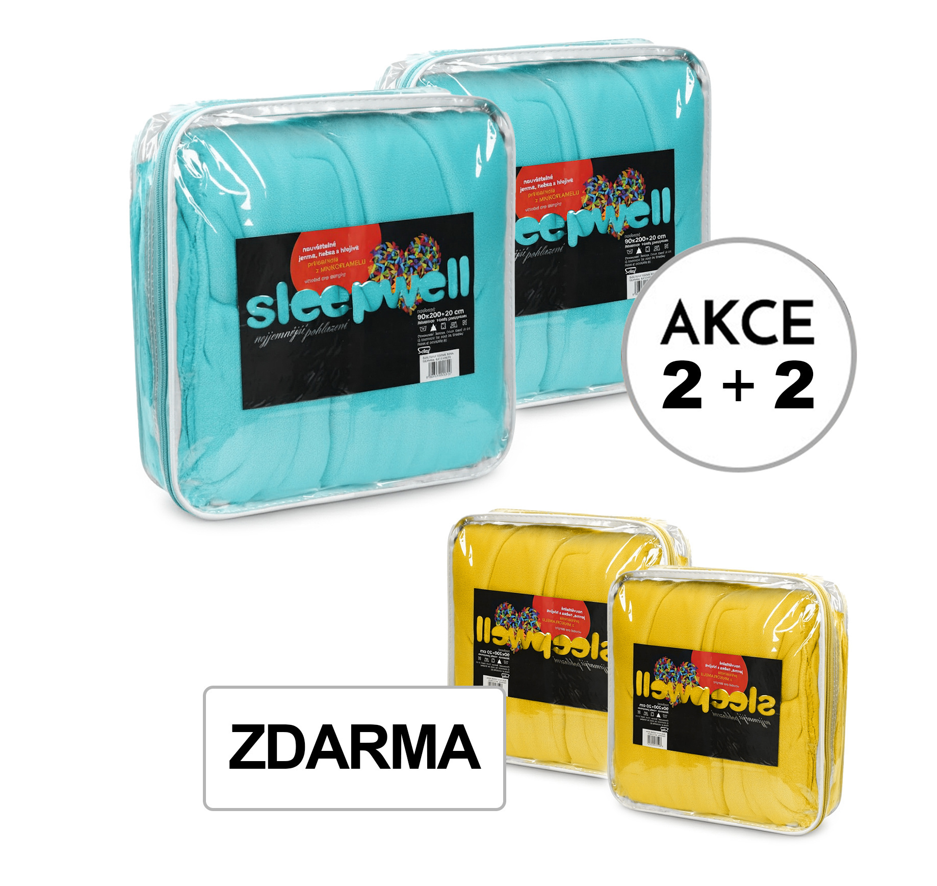 A Akce 2+2 2x Prostěradlo MIKROFLANEL Sleep Well Tyrkysová 180/200/30 + 2x 90/200/30 Žlutá ZDARMA