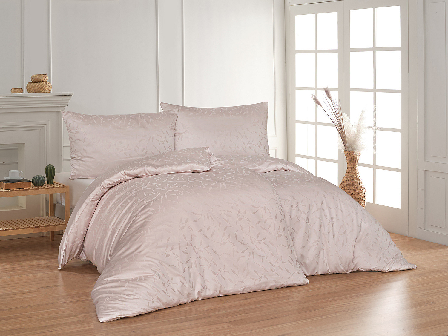 Tato synonyma vystihují žakárové damaškové povlečení VICTORIA s decentním florálním vzorem. Přirozený lesk a jemné vytkané lístky se dokonale snoubí se světlým odstíhem taupe hnědé barvy.