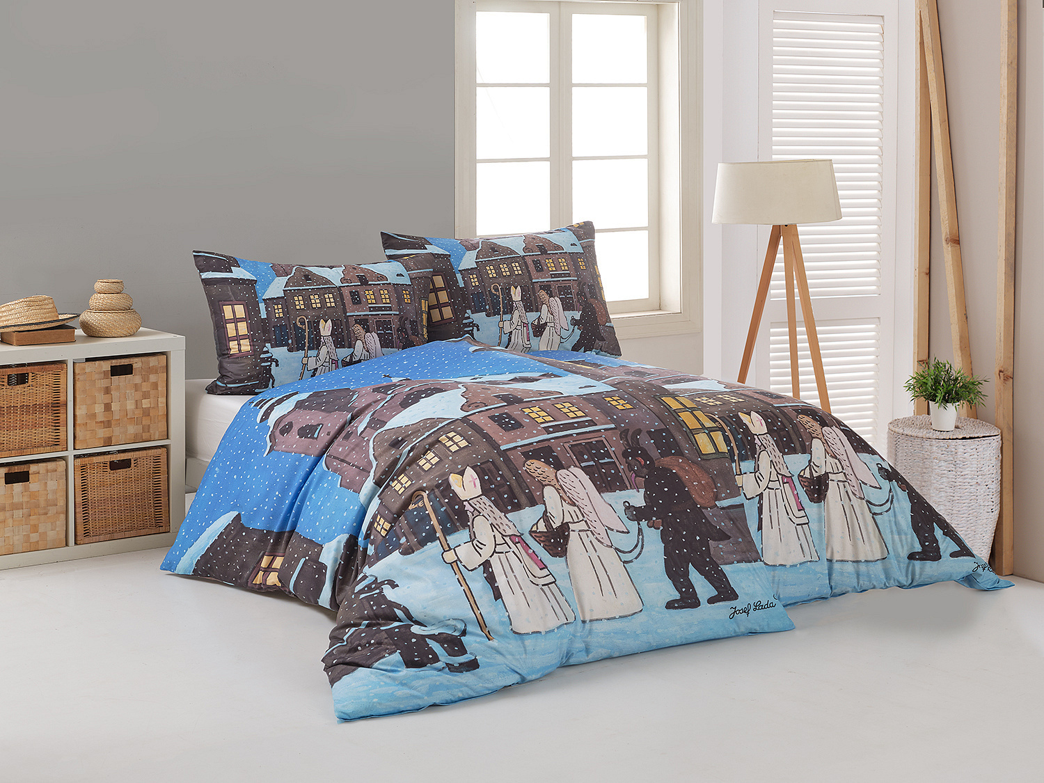 Pozvěte k sobě domů kouzlo nestárnoucích kreseb Josefa Lady, které jsou pro mnohé z nás symbolem dětství, harmonického venkova a české tradice. Motiv inspirovaný lidovou tradicí Mikuláše, anděla a čerta zachycuje kouzlo adventního období a připomíná oblíbený zvyk spojený s očekáváním Vánoc.