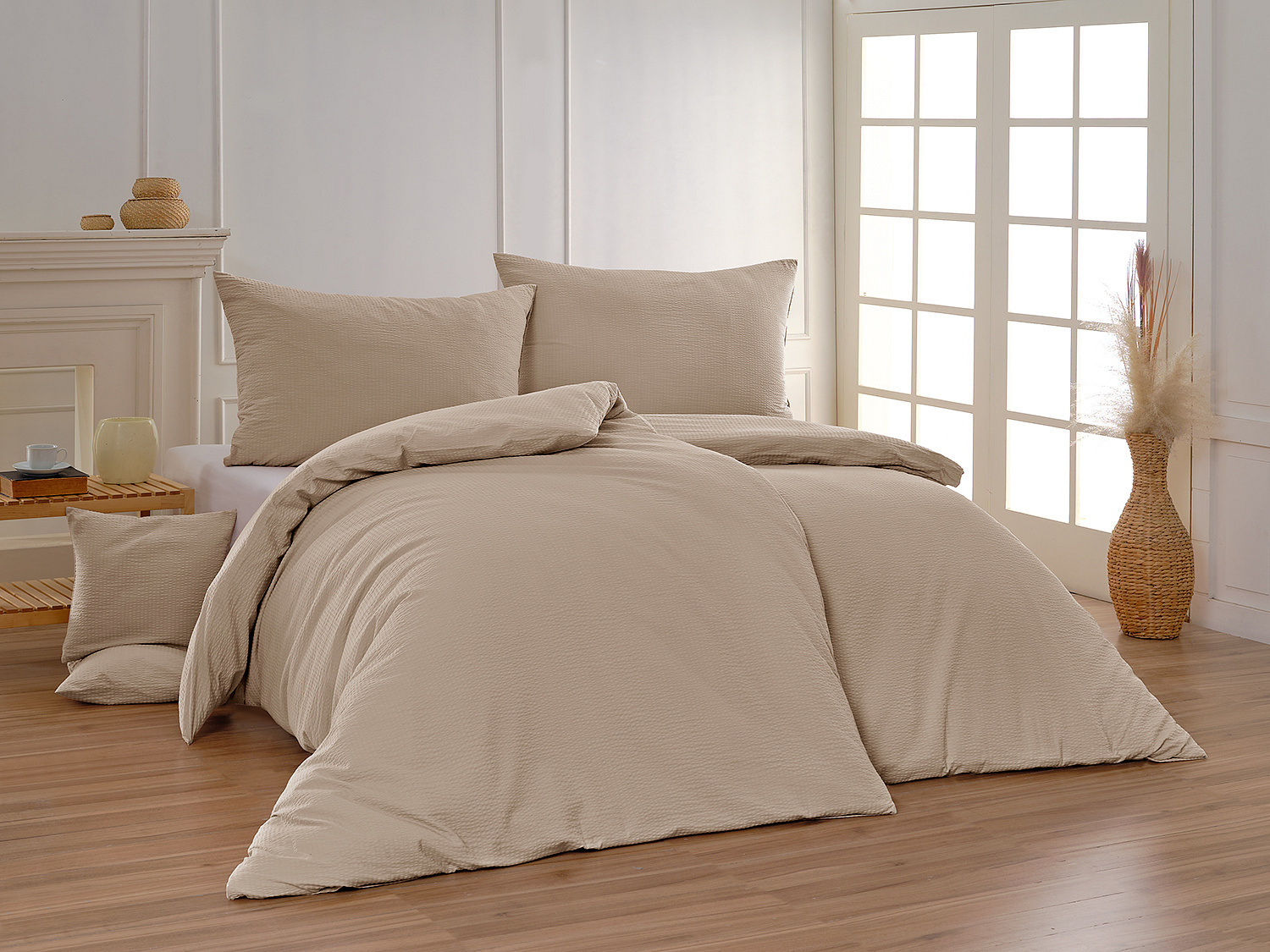 Luxusní krepové povlečení, v provedení kvalitní 100 % bavlny, opatřeno komfortním zipovým uzávěrem. Snadná údržba bez žehlení.
