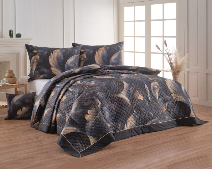 Přehoz Lyra je jedinečný estetický a praktický doplněk, se kterým bude vaše postel vždy dokonale ustlaná. Jako výplň je použito vrstvené duté vlákno se sníženou gramáží. Povrchový materiál tvoří 100% bavlněná látka ve stejném dezénu jako ložní povlečení. Po celé ploše je aplikováno ozdobné prošití, aby se zajistila stabilita výplně a současně podtrhl celkový vzhled přehozu.