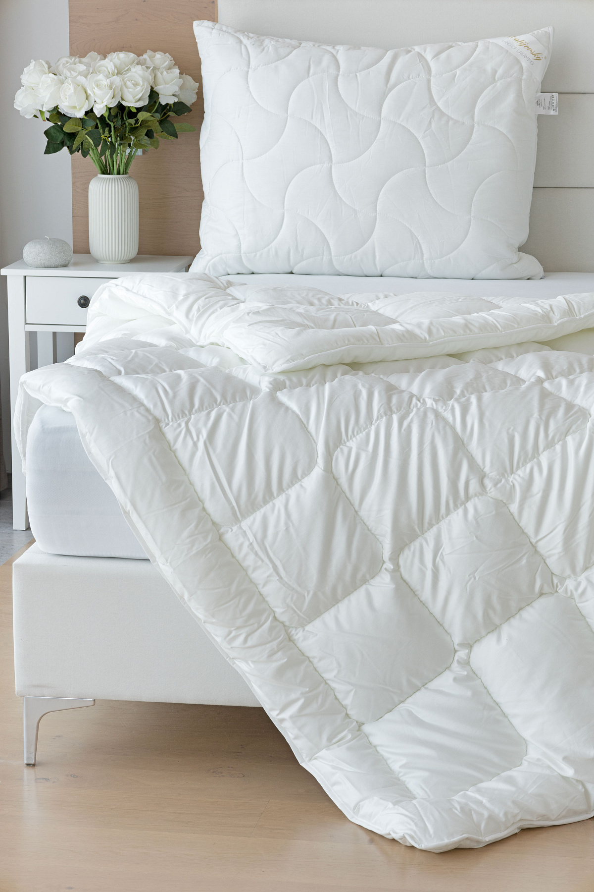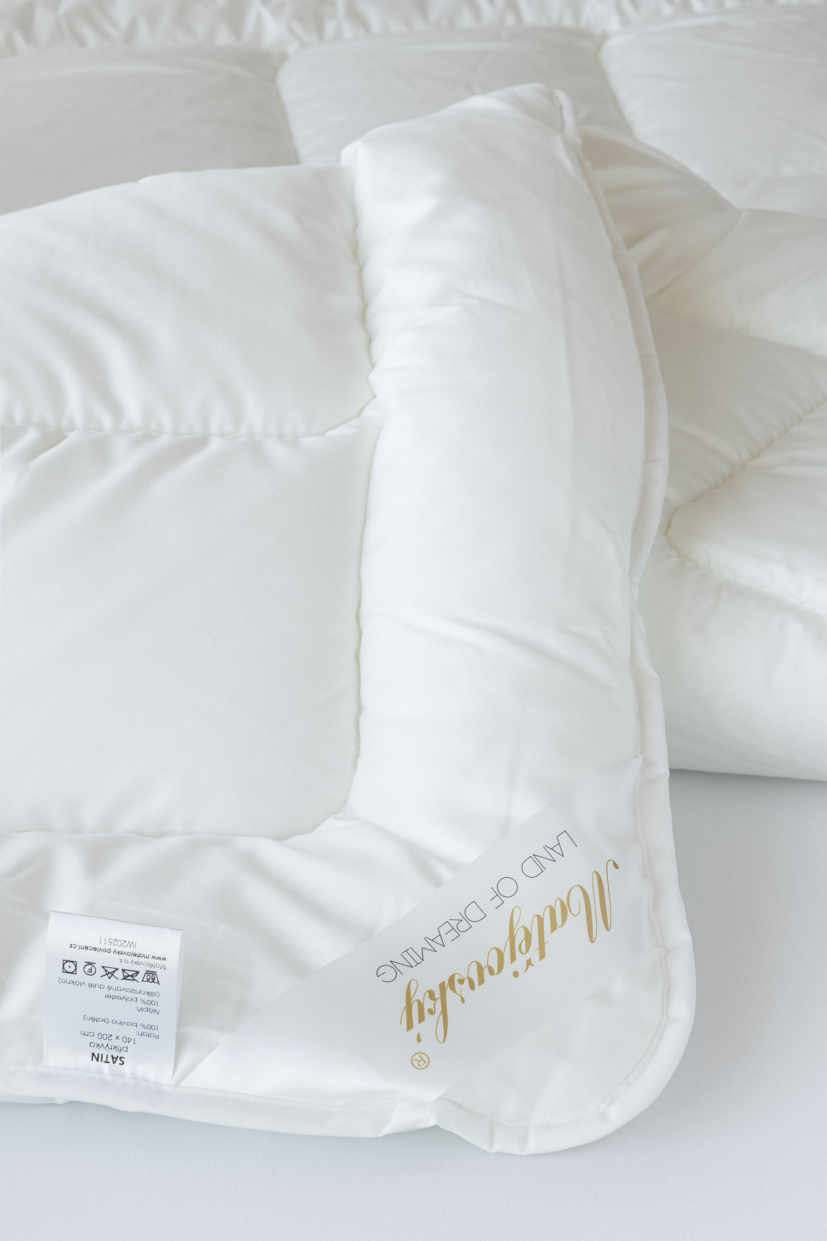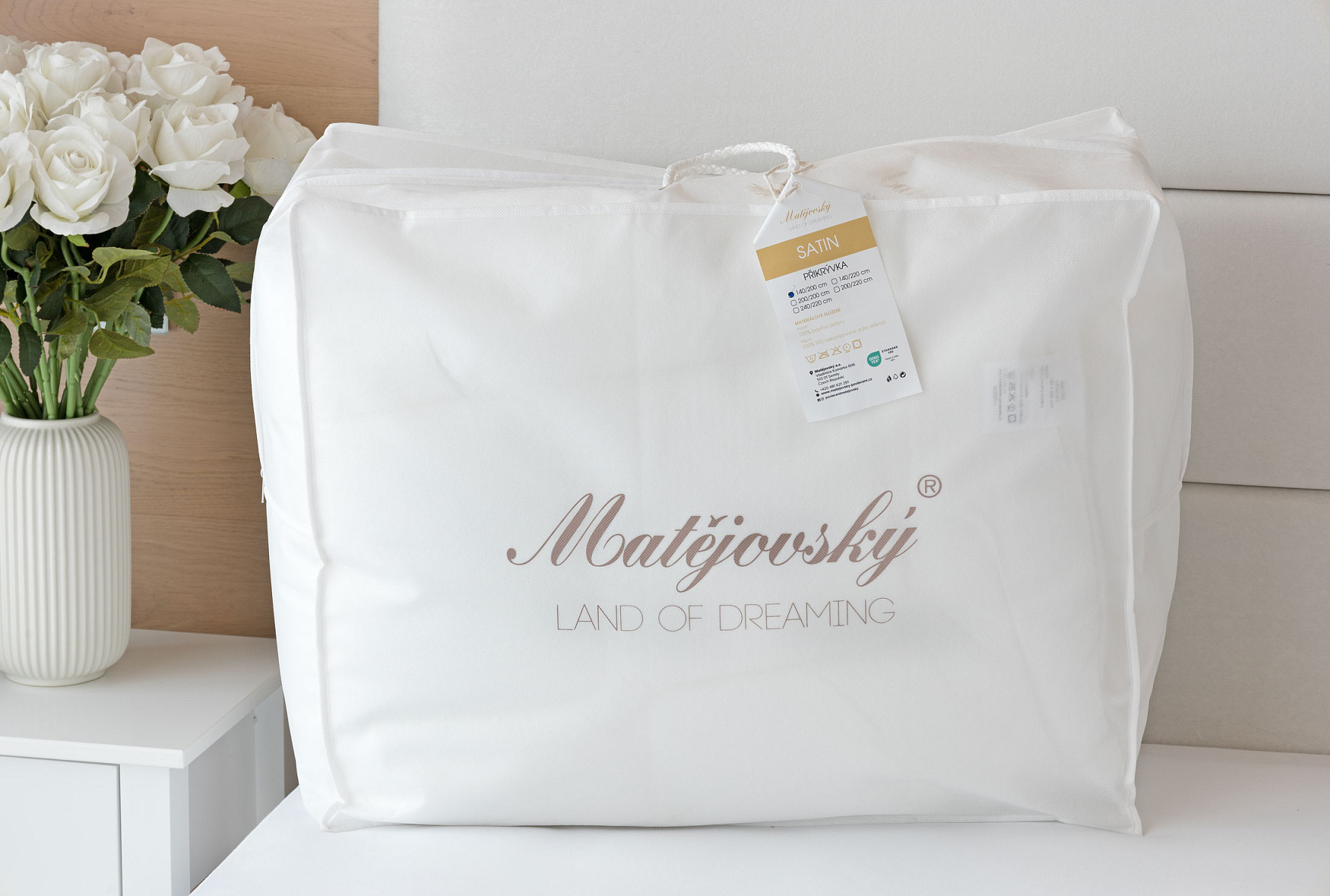 Povrchová látka v úpravě bavlněného saténu je hebká na dotek, prodyšná a dobře absorbuje vlhkost. Výplň přikrývky tvoří silikonizované duté vlákno, které je nadýchané, pružné a lehké. Prošití v celé ploše zajišťuje perfektní stabilitu výplně.