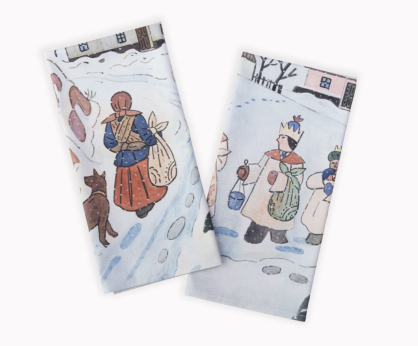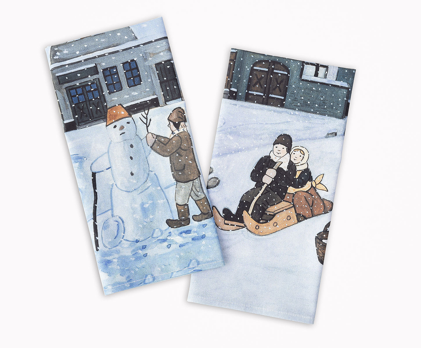 Bavlněná utěrka Kalendář se díky nejmodernější digitální tiskové technologii pyšní nádhernými barvami a precizními detaily, které vykreslují autentickou ladovskou poetiku čtyř ročních období.