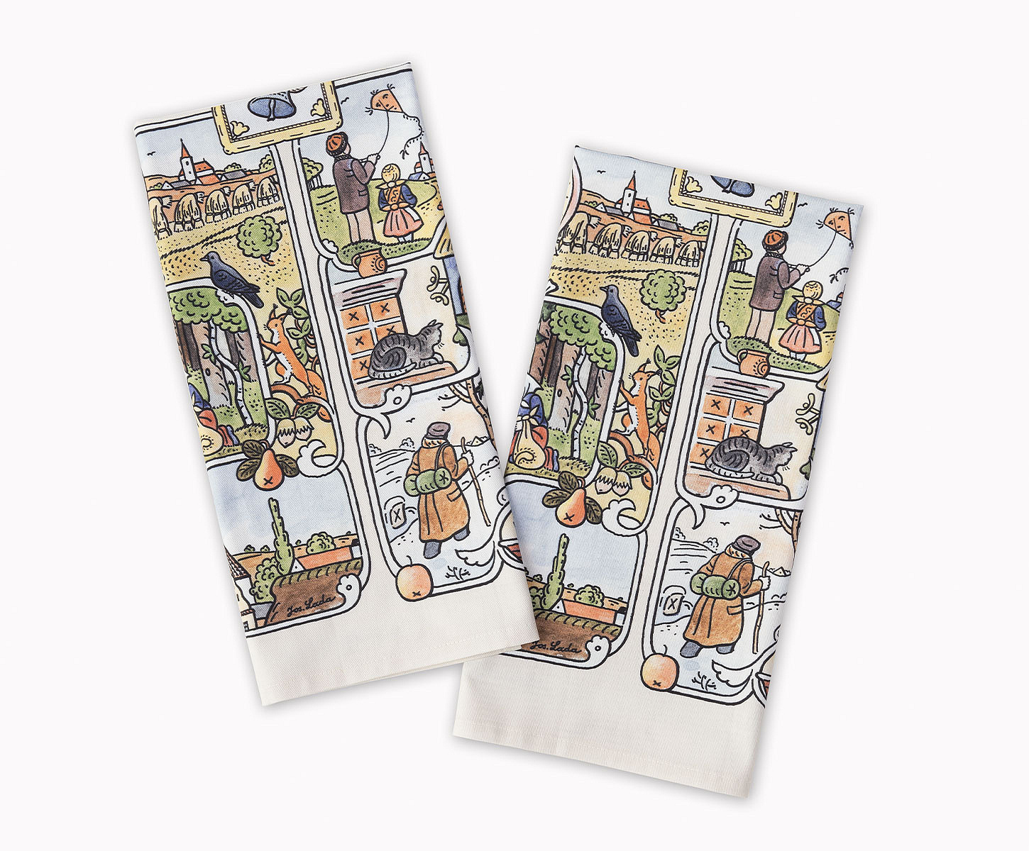 Kolekce bavlněných kuchyňských utěrek s kresbami Josefa Lady vnese do vaší kuchyně jediněčnou atmosféru.